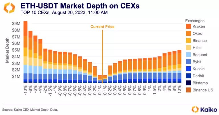 Comparing Liquidity on Uniswap and BinanceThis week we’ll take our first in-depth look at Market Depth on CEXs and on Uniswap V3 with a comparative approach. We’ll mainly focus on liquidity distribution across prices and markets, aiming to enhance our understanding of liquidity dynamics and provide you with tools to harness the potential of CEX/DEX data. In today’s trading landscape with DEXes gaining market share, knowing which exchanges or pairs offer optimal trade execution is crucial. Kaiko’s depth data makes that possible.