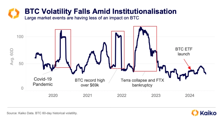Bitcoin’s dwindling volatility signals maturityUS inflation data buoyed markets last week before the Fed’s latest dot plot gave traders a reality check. Elsewhere, ZKsync is set to airdrop 3.6 million tokens this week and ProShares joined the ETH ETF race after sitting out of the BTC launch. This week we will explore: