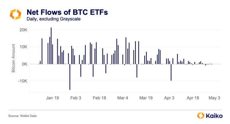 Is the ETF rally over?Bitcoin had a volatile week, dipping at one point below $57k before rebounding over the weekend as concerns eased over interest rates. In other news, restaking service Eigenlayer announced an airdrop, the former Binance CEO got a 4-month prison sentence, and Coinbase posted strong Q1 revenues.