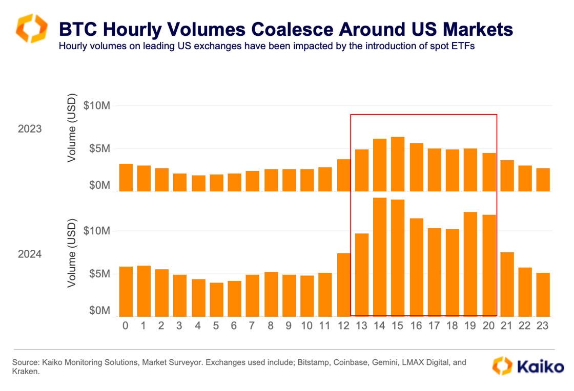 The ecosystem surrounding BTC ETFs has also improved liquidity across crypto platforms. ETF issuers’ “authorized participants” are responsible for creating and redeeming shares, requiring these firms to manage risk throughout the day.