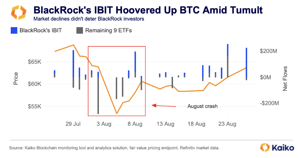 The Japanese carry trade unwind in August showcased another key benefit of the ETF structure. Implied volatility surged on Deribit during the first weekend of August as traders panicked. A risk-off mood hit markets, fueled by the BoJ tightening monetary policy and the Fed signaling a rate shift. This spooked investors, causing BTC to plummet nearly 20%.