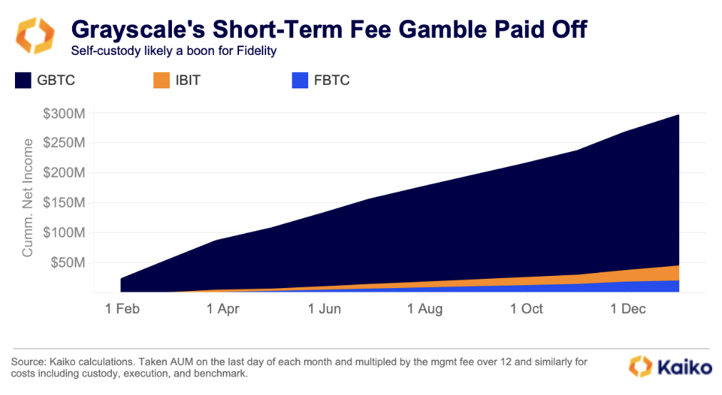 Custody is excluded from Fidelity’s net figure as FBTC is self-custodied. As a result, FBTC competes on net income terms with IBIT.