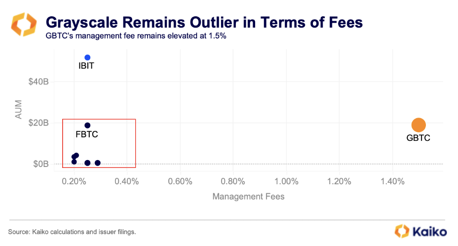 From the outset, and even before launching, issuers competed for market share by offering reduced management fees. Many introduced fee waivers at launch in January 2024, such as no fees on the first few billion dollars of assets under management or free management fees for the first 12 months. Some, like VanEck, have even extended these promotions as recently as November. Grayscale, however, has maintained its fees at 1.5%.