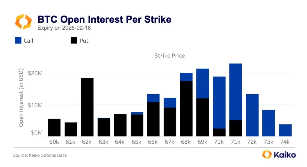 Consider crypto-native prediction markets on Polymarket versus Deribit options for similar exposures. Polymarket’s “BTC Up or Down Feb 15” market recorded $764k in total volume, while the “BTC Up or Down Feb 16” market generated $546k. ETH markets showed similar patterns, with $428k for Feb 15 and $333k for Feb 16. The volumes appear meaningful in isolation, but comparing them to short-dated options reveals the competitive challenge prediction markets face against established options infrastructure.