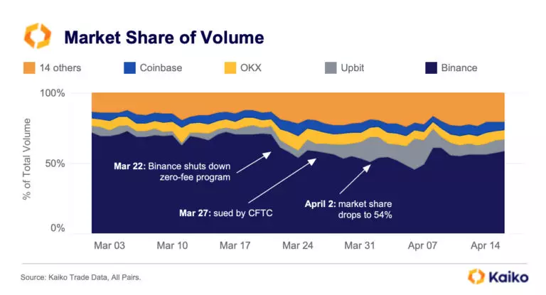 Binance Market Share Tumbles 16%Bitcoin closed the week slightly up despite a major CFTC lawsuit against Binance and news that the U.S. government had sold 9,861 BTC connected to Silk Road (with plans to sell more).