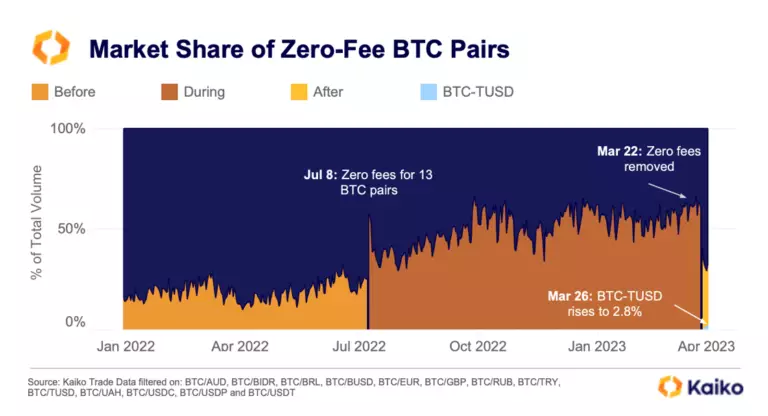 The Binance EffectThis week, we explore how Binance influences global patterns in trade volume in light of their reintroduction of fees on most BTC pairs, aside from TUSD which is now the largest stablecoin by BTC volume on Binance.