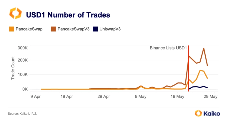 Trump’s stablecoin on-chain activity surges post-Binance listing.This week we explore World Liberty Financial’s stablecoin, USD1. The Trump family’s DeFi project launched the token over a month ago, and its seen significant uptake on-chain, however, off-chain activity has lagged. We also take a look at what crypto ETF applications are leading the approval race, how derivatives markets are maturing, and more.