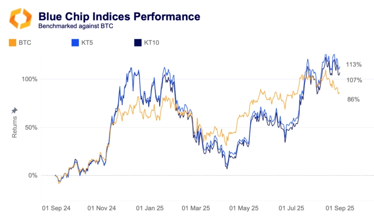 A Standard for Benchmarking SuccessThis week, we’re analyzing the Kaiko 10 Index (KT10), part of our multi-asset Blue Chip indices. With a compound annual growth rate of nearly 60% since inception, the index offers a competitive returns that capture the broader markets performance without sacrificing.