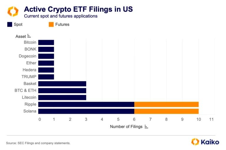 ETF applications are eating the worldIts a who’s who of hedge fund managers in Miami this week as conference season kicks into gear. For the second year running the south Florida skyline lit up with the BTC symbol as well as a homage to US President Donald Trump. With this symbolic celebration of crypto’s ascends into the mainstream we’re looking at the latest ETF applications and just how likely it is we’ll see a Dogecoin or Bonk product hit the market.
