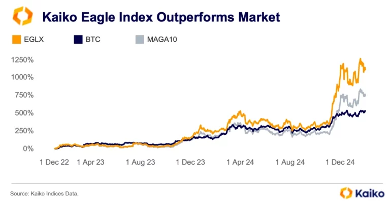 Fly, EAGLE FlyThis week we’re looking at one of Kaiko Indices newest products, the Kaiko EAGLE Index. This is our first regional index and asset selection wasn’t sector specific. As such it includes Layer-1 assets, a meme coin and a utility token.