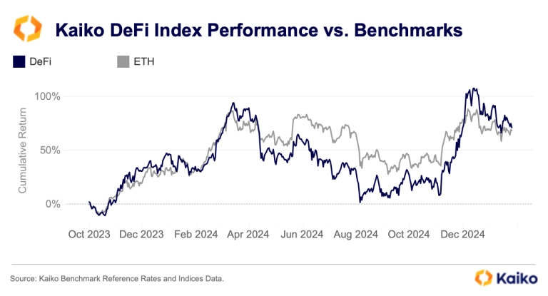 Diversified Access to DeFiThis week, we’re looking at the Kaiko DeFi Index, part of our family of sector-based indices. The Kaiko Indices DeFi index offers strong sector exposure while diversifying across key growth verticals.