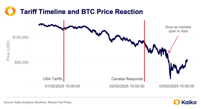 Tariff Driven TumultFears of an escalating trade war are weighing on Bitcoin and other risk assets after the U.S. imposed tariffs on China, Canada, and Mexico, prompting retaliation from Canada. Meanwhile, the SEC has approved another joint BTC and ETH ETF, and Trump-affiliated product websites have begun accepting TRUMP and MELANIA tokens as payment.