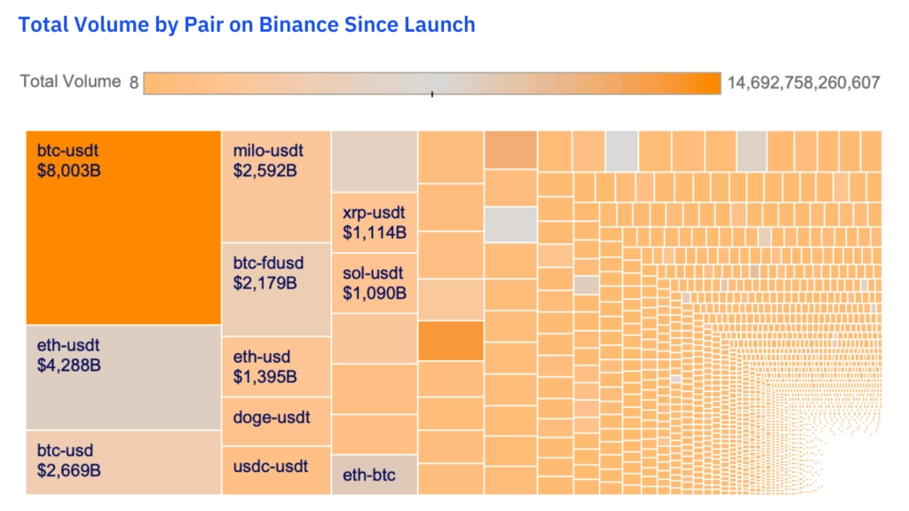 → On the snapshot day, Binance processed 61.9 million trades for $20 billion in spot volume, implying a small average trade size and frequent prints.