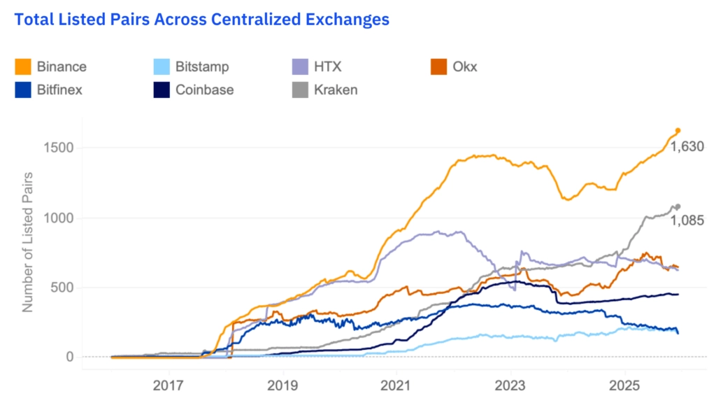 Binance reached 300 million registered accounts in December 2025, eight years after launching. The exchange built liquidity conditions that separated it from competitors, not through guaranteed dominance, but through execution reliability, infrastructure investment, and design choices that compounded across that period. It now processes over $20 billion in daily spot volume across 1,630 trading pairs, maintaining depth that supports both retail and institutional execution with minimal slippage.